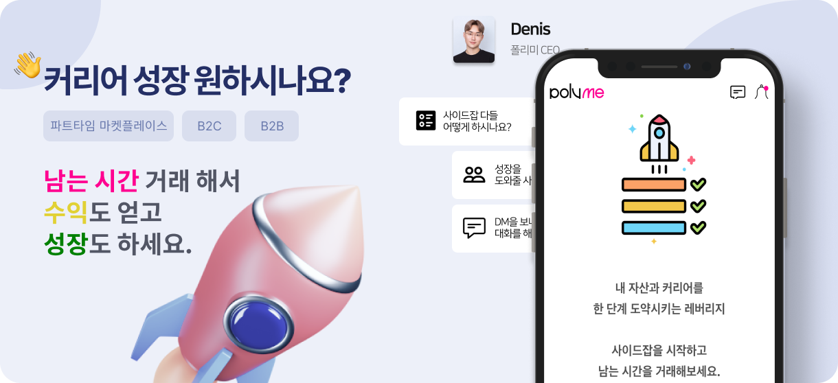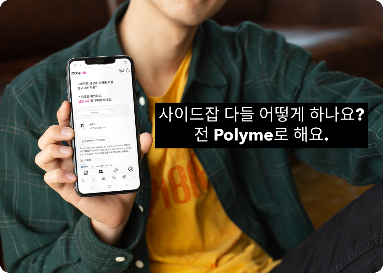 폴리미는 남는 시간에 본인의 전문성을 성장시키며 경제활동을 할 수 있는 N잡러를 위한 서비스입니다.